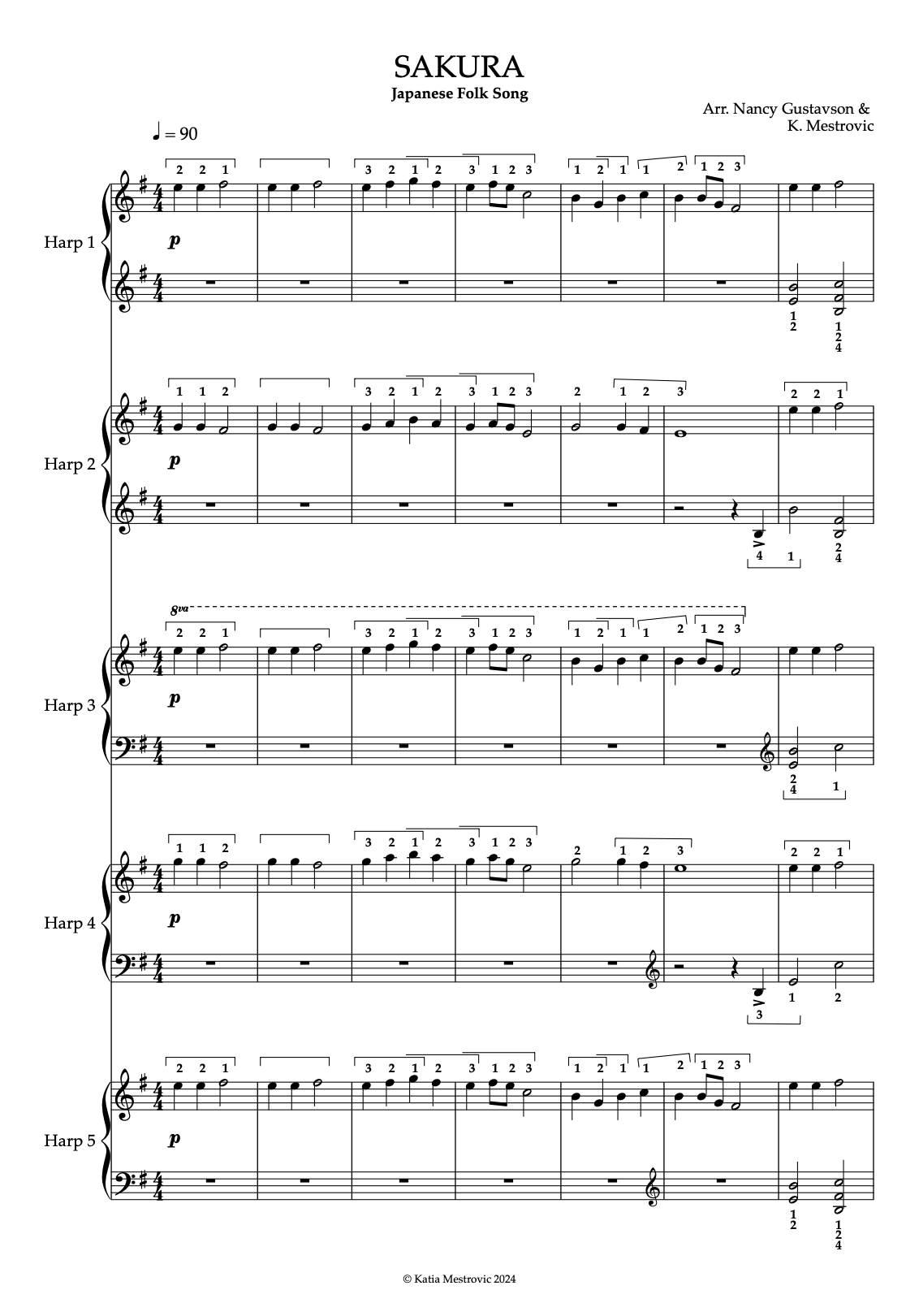 Sakura, Japanese Folk Song arr. for harp by N. Gustavson; ensemble arr. by K. Mestrovic