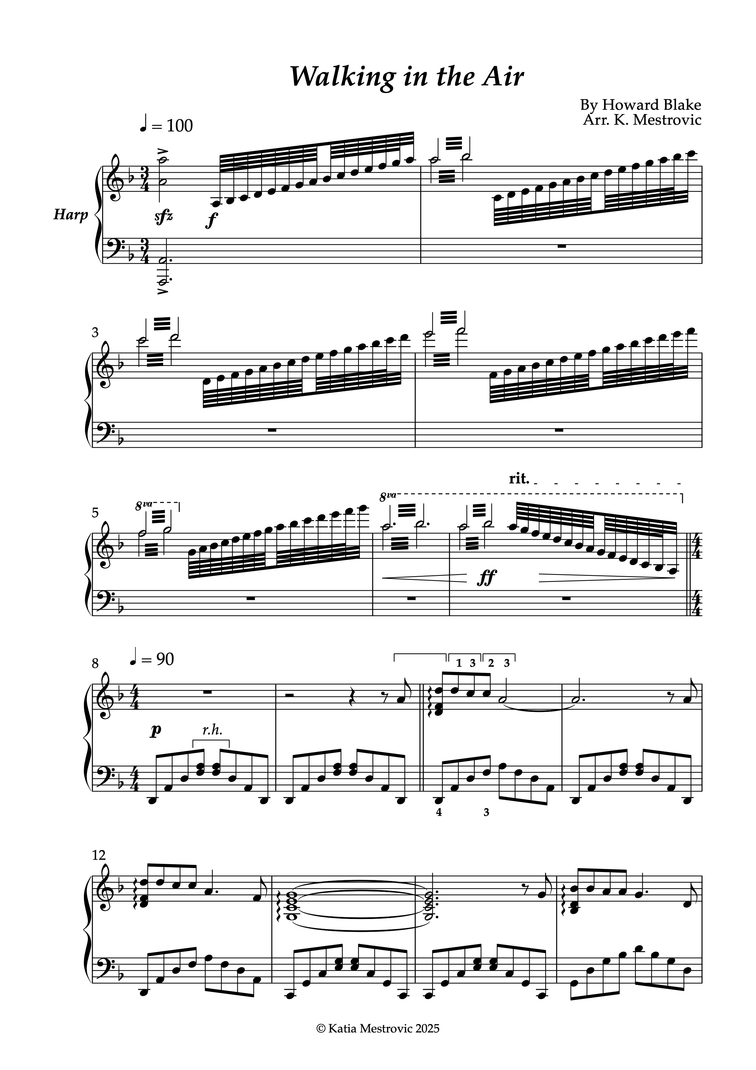 Walking in the Air, by Howard Blake; arr. K. Mestrovic (4︎) - for Solo Harp