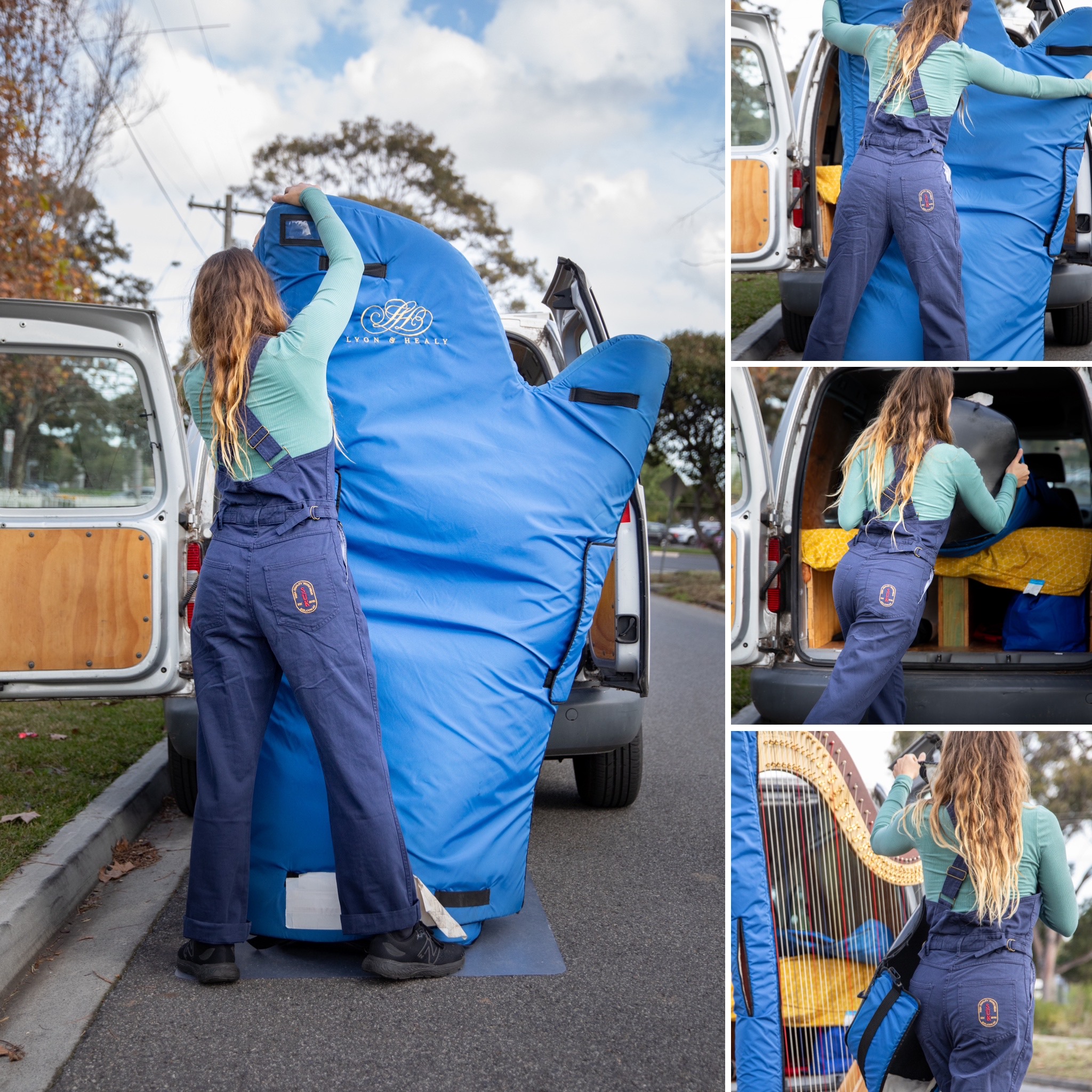 ︎ Jo Baée orginally from NSW, travels reguraly interstate to service and regulate pedal and lever harps. See her website for availability or to book a service.
